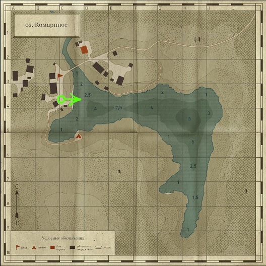 道なきノヴゴロドの森に囲まれた静かな湖です。 湖のそばの急な傾斜のある湖畔に小さな村があります。 ここでは必需品を購入したり、魚を売ったり道具を修理することができます。 アクセスが便利で魚の種類も多いため、初心者の人にもぴったりな場所です。 |