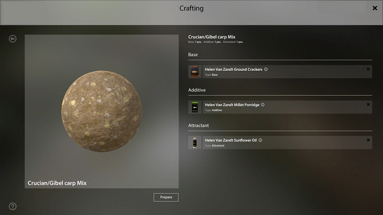 groundbaitの作成はレシピから行います。これに慣れるには上記の「クラフト」を参照してください。