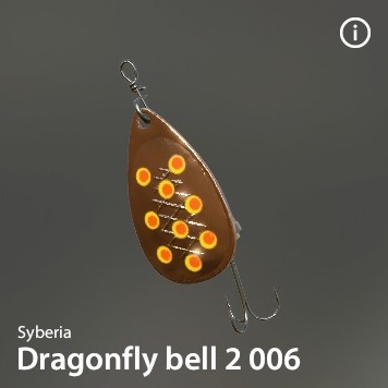 | Dragonfly Bell #2 | 3.0 | 5.10 | - | S | 6.00 g | 5.5 g | 4.0 cm | x 1 | 20 - 2/0 | TRBHK101 S5 | Syberia |