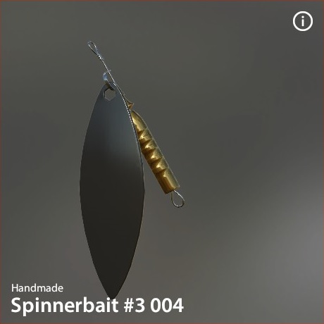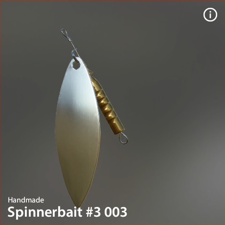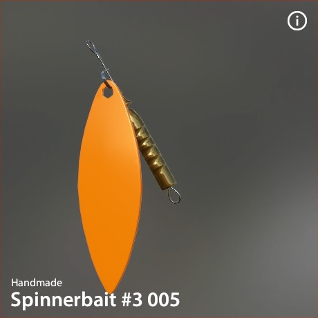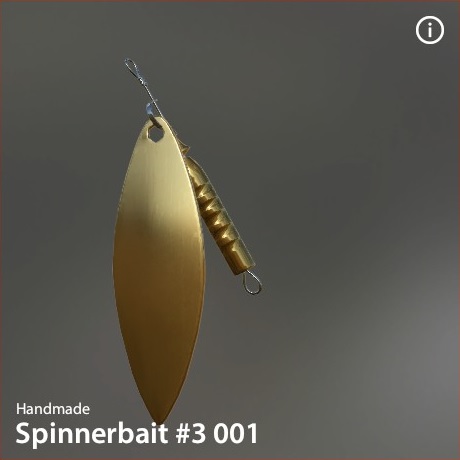 Crafted spinner #3 - spinnerbait of a "Long" type. This lure is used to fish in currents. It can be crafted using copper, brass or melchior (alloy). The blades of the spinner are of elongated almond-like shape. The blade's color matches the natural color of the metal, out of which it was made, however it may be altered by means of chemical regents. The efficiency of the lure depends on the level of crafting.