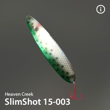 | Slimshot 15 | 2.5 | 17.90 | - | M | 15.0 g | 14.4 g | 7.0 cm | x 1 | 16 - 3/0 | Happy Three TRPL-10 S1 | Heaven Creek |