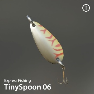 | TinySpoon | 1.5 | 1.90 | - | M | 13.5 g | . g | 6.3 cm | x 1 | 16 - 2/0 | Stinger Triple S2 | Express Fishing |