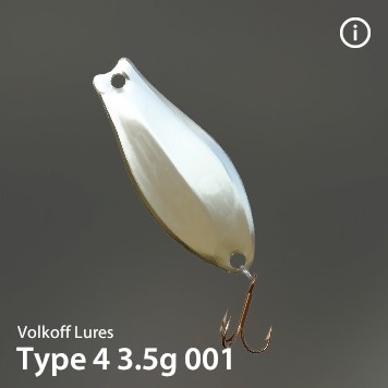 | Type 4 3.5g | 5.0 | 28.90 | - | S | 3.5 g | 2.9 g | 4.0 cm | x 1 | 18 - 2/0 | Happy Three TRPL-11 S4 | Volkoff Lures |