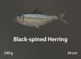 Fish of the herring family. Distributed in the Caspian Sea basin. It feeds on small crustaceans and insect larvae. Black-spined herring have high bodies that are compressed from the sides. The body is shortened in the tail area and the wedge-shaped head with large eyes has weakly developed teeth. The length of an adult fish can reach 35 cm, and weight - more than 400g.