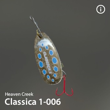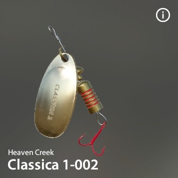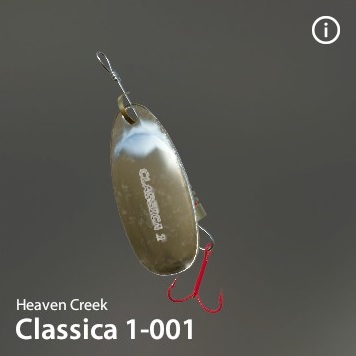| Classica 1 | 4.0 | 14.90 | - | S | 3.00 g | 2.55 g | 3.5 cm | x 1 | 14 - 1 | Happy Three TRPL-10 S6 | Heaven Creek |