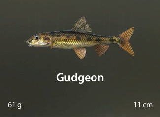 The Gudgeon is a fish of the Cyprinidae family. It is not a game fish, yet it is a widespread species. Its native range includes the whole of Europe, except its northern and southern parts (up to the upper course of the Lena). It occurs in the Amur River basin. There are several subspecies of gudgeon. Southern ones are distinguished by bigger scales, those living in rapid rivers have protective scaling on the throat. Gudgeon usually lives in big shoals in rivers with moderate or weak currents and sandy or pebble ground, as well as in brooks and ponds with flowing water. Normally it stays in the deep water. It is known for being diurnal, normally it doesn't move at night. Gudgeon is a typical bentophagous fish. Its diet is based on small invertebrates living on the bottom of the water body. Gudgeon also feeds on roe of other fish species. And it is preyed on by predatory fish. Its appearance is specific. The body is spindle-like, slightly flattened on the side of the belly. The scales are big. Its dorsal surface is tawny greenish, the flanks are silvery with bluish or blackish spots. The abdomen is silvery. The head is flat, eyes are turned upwards. There are dark points on dorsal and caudal fins. Such coloring enables gudgeon to disguise itself on the ground. Its snout is elongated, its lower jaw is shorter, than the upper one, there are barbels on the corners of its mouth. Gudgeon, swimming in the water, may be easily recognized by its pectoral fins spread side-wards, endowing its outline with a triangular shape.