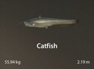 The catfish is a very large fish, its reaches a length of 5 m and a weight of 300 kg.